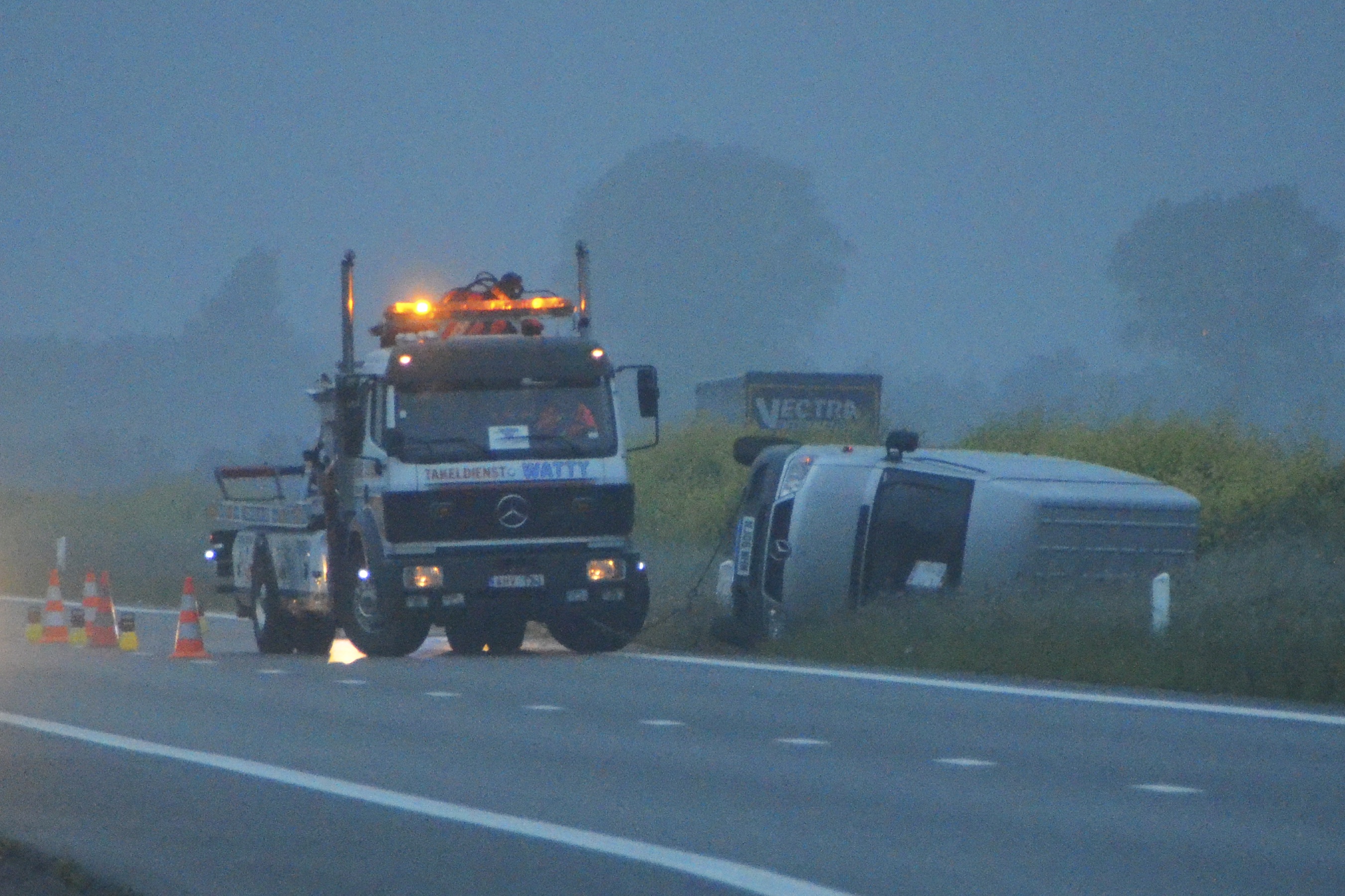 De dag voor een nationale feestdag is het traditioneel rustig. Morgen donderdag is er geen krant en dus waren de redacties vandaag leeg. Rustig betekent in dat geval: dan kunnen we rustig doorwerken. Tenzij er een fait divers gebeurt. Zoals deze morgen om 5uur. Een bestelwagen was er op de autosnelweg in Westkerke op zijn zijde beland na een klapband.