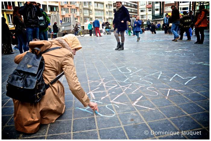 De gevolgen van de dodelijke aanslagen in Brussel zijn ook zichtbaar in het straatbeeld van Oostende. Via bloemen, stiltes, en krijttekeningen uit solidariteit. Maar ook via extra veiligheidsmaatregelen. Onder ander aan de luchthaven, waar de politie iedereen controleert. Heel België ontwaakte gisteren met een somber gevoel. De terreur was geen nachtmerrie, maar bikkelharde realiteit. Het ongeloof was voelbaar tot in Oostende.
