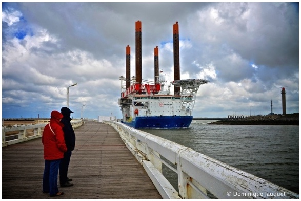 Het indrukwekkende installatieschip Vole au Vent (what’s in a name) van Jan De Nul vaarde woensdagmiddag de Oostendse haven binnen. In de haven vinden momenteel de voorbereidingen plaats voor Nobelwind, het vierde windmolenpark dat gebouwd wordt voor onze Belgische kust. Het installatieschip wordt morgen gedoopt door koningin Mathilde.